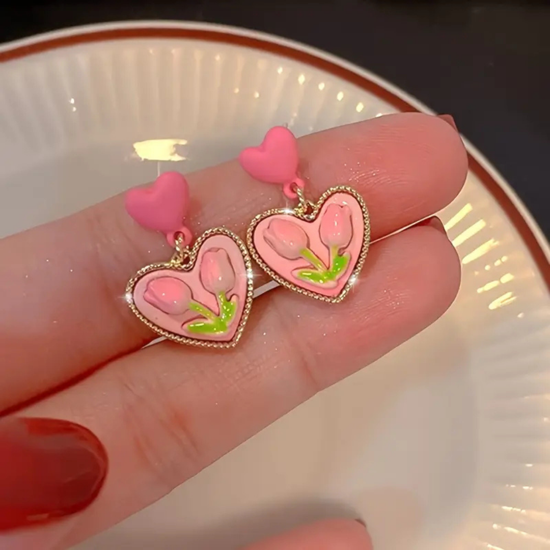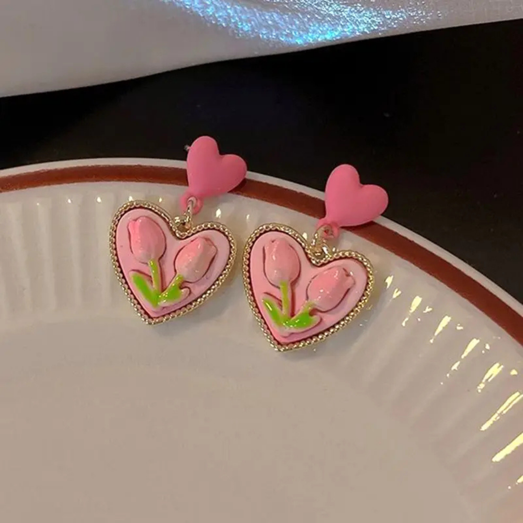 Delicately crafted, the Pink Tulip Heart Earrings combine graceful floral design with a romantic heart motif. Expertly finished in soft pink tones, these earrings offer a subtle yet elegant accent suitable for both casual and formal occasions. Their lightweight construction ensures comfortable wear, making them an excellent choice for those seeking refined, feminine jewelry with timeless appeal.